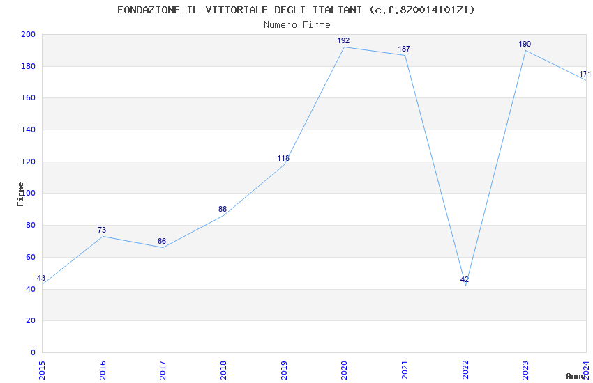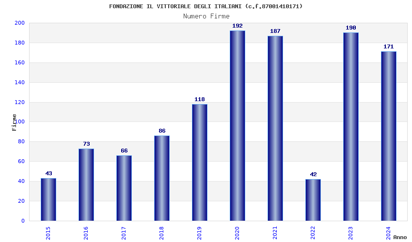 | Anno | Firme | Importi | Media | Naz. | Reg. | Prov. | Comu. |