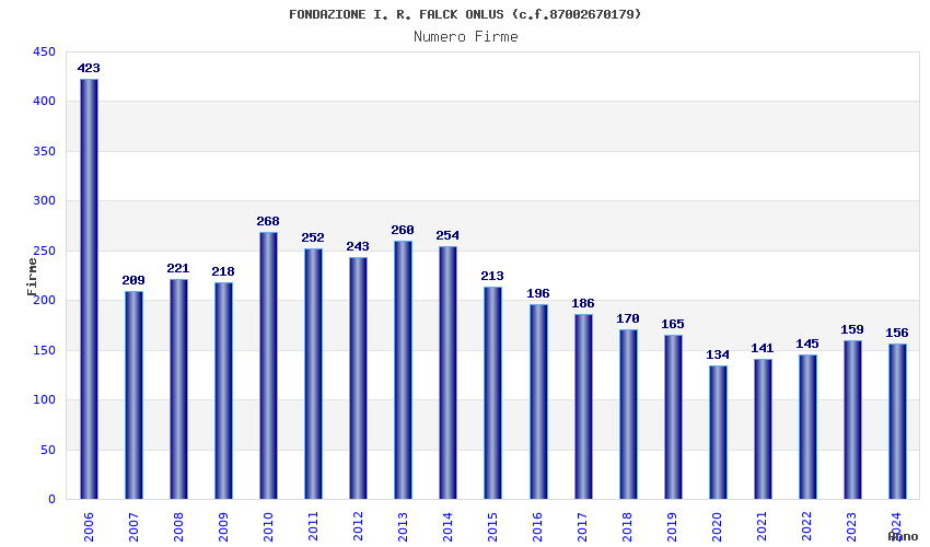 | Anno | Firme | Importi | Media | Naz. | Reg. | Prov. | Comu. |