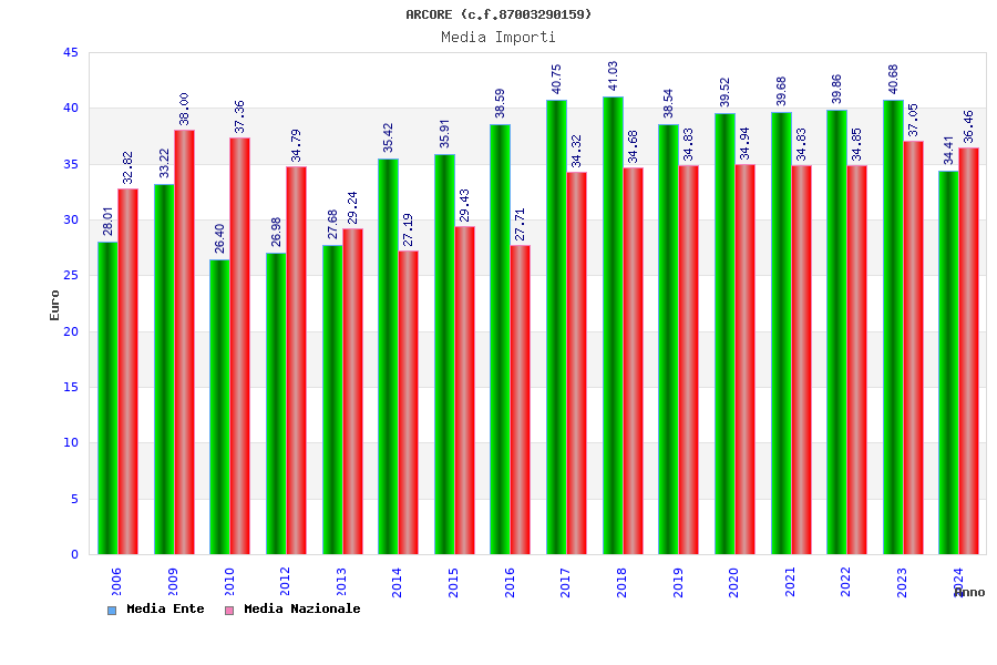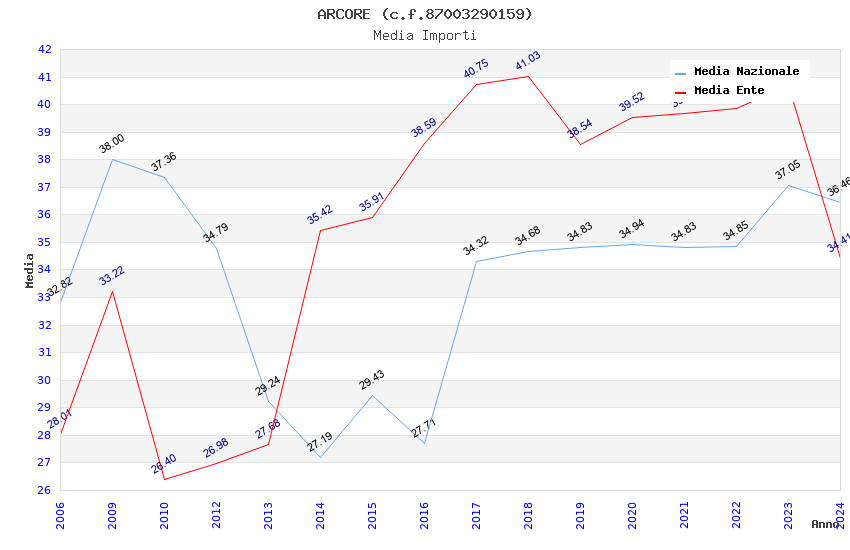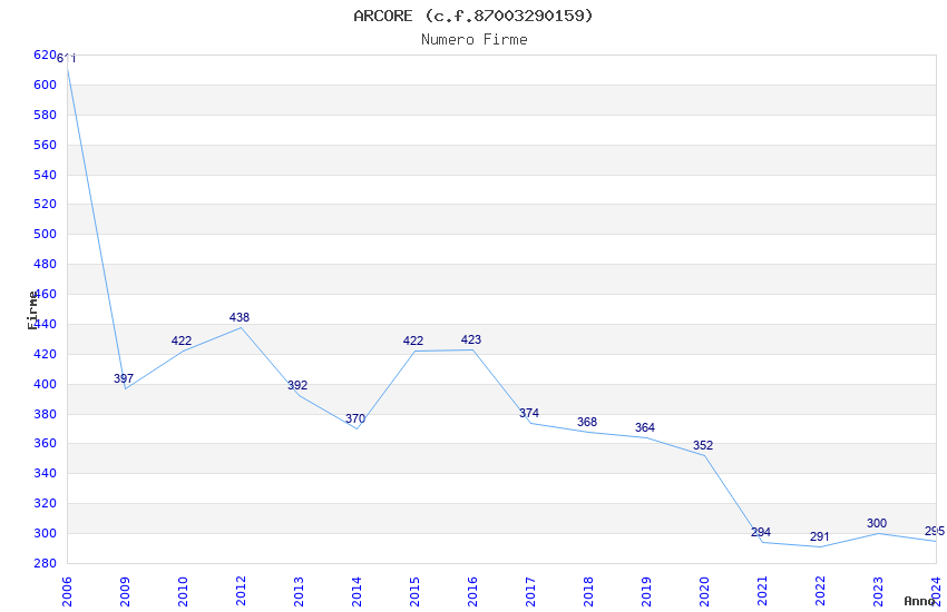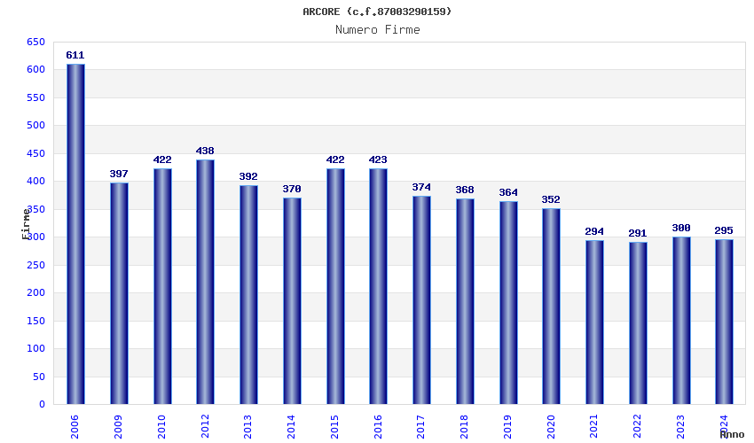 | Anno | Firme | Importi | Media | Naz. | Reg. | Prov. | Comu. |