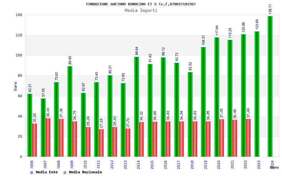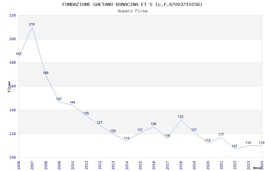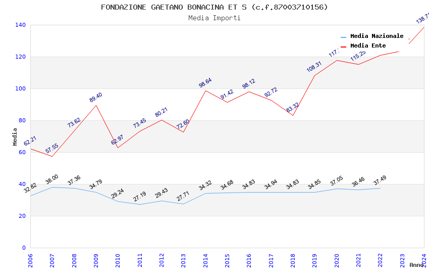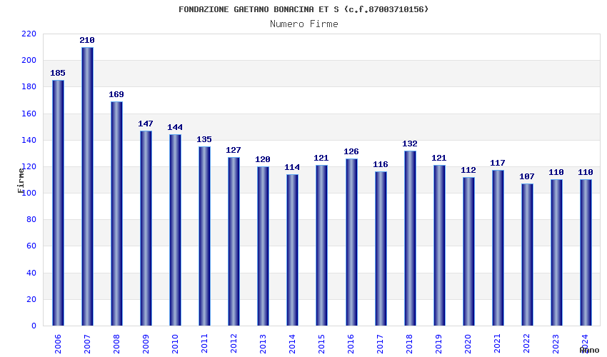 | Anno | Firme | Importi | Media | Naz. | Reg. | Prov. | Comu. |