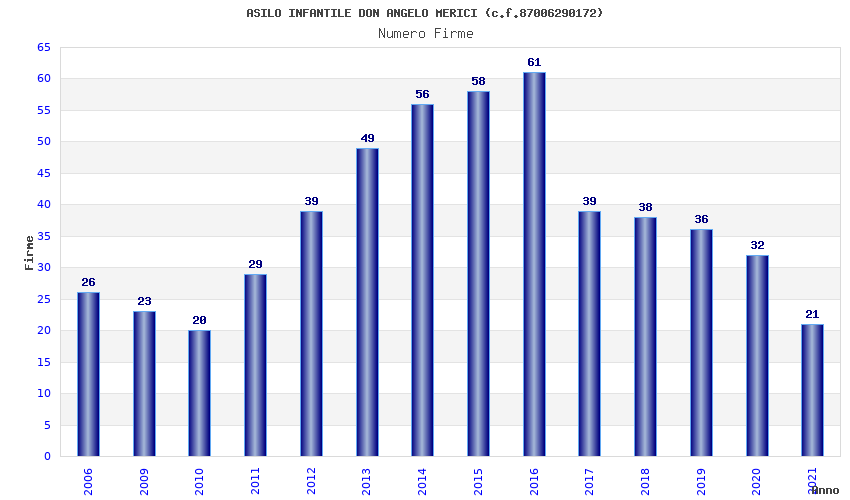 | Anno | Firme | Importi | Media | Naz. | Reg. | Prov. | Comu. |