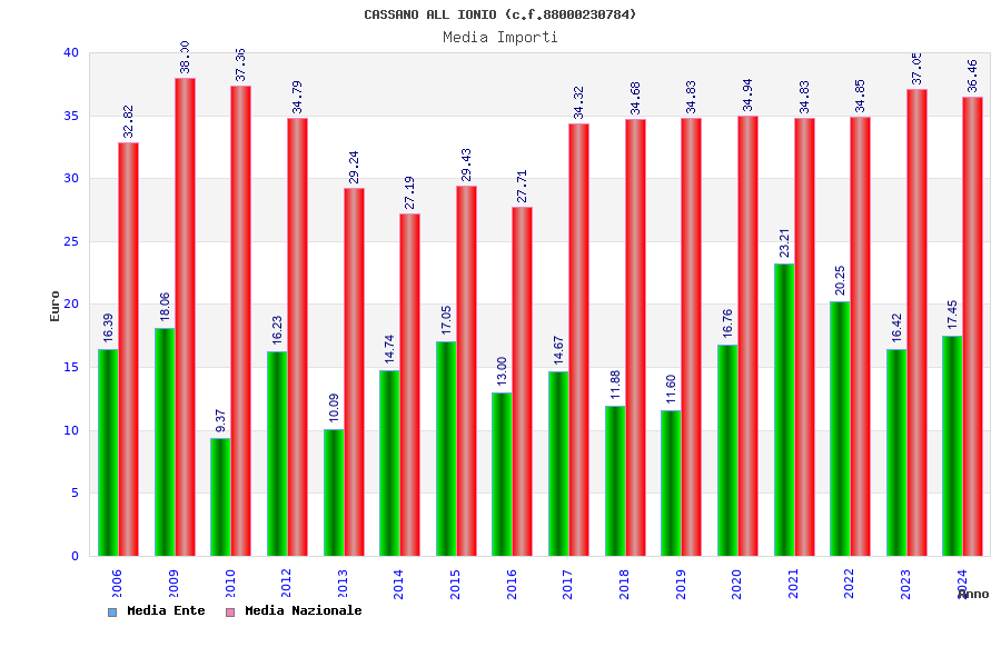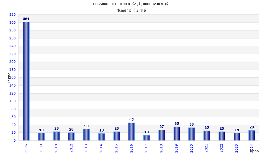 | Anno | Firme | Importi | Media | Naz. | Reg. | Prov. | Comu. |