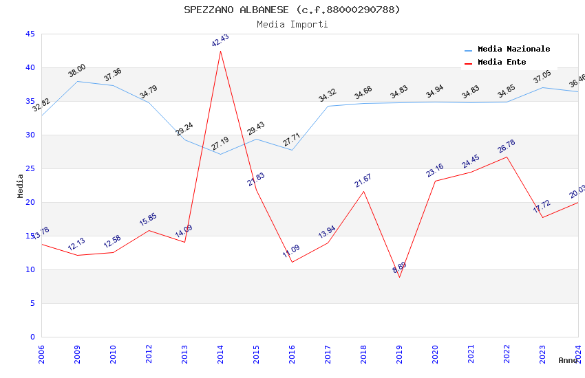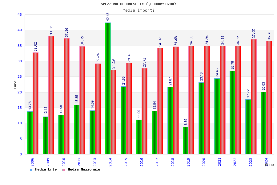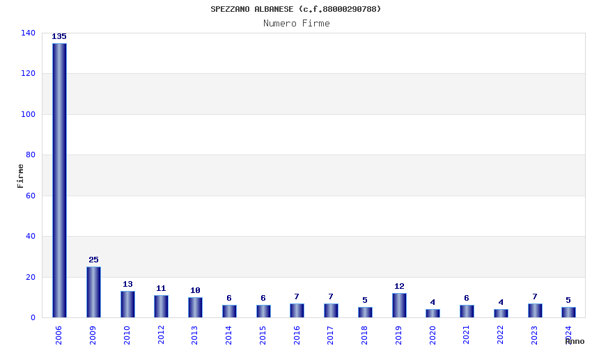 | Anno | Firme | Importi | Media | Naz. | Reg. | Prov. | Comu. |