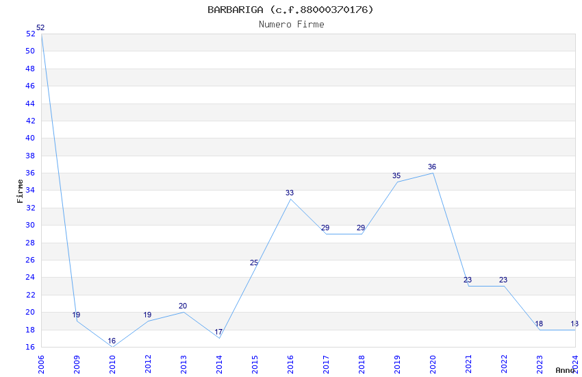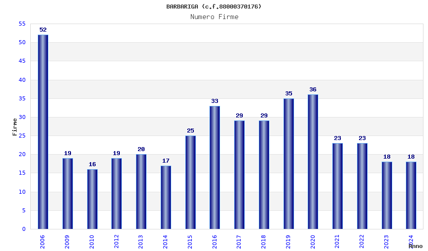 | Anno | Firme | Importi | Media | Naz. | Reg. | Prov. | Comu. |