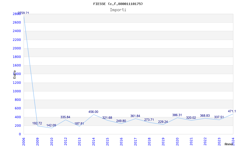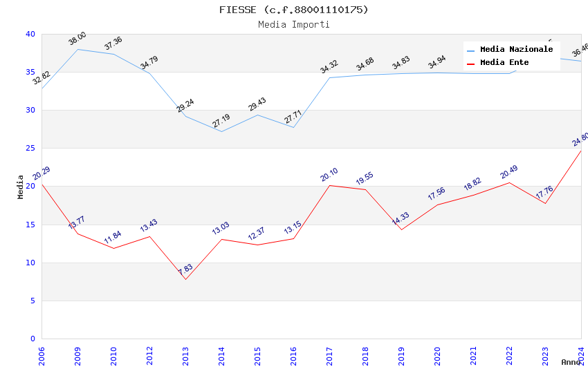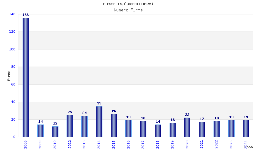 | Anno | Firme | Importi | Media | Naz. | Reg. | Prov. | Comu. |