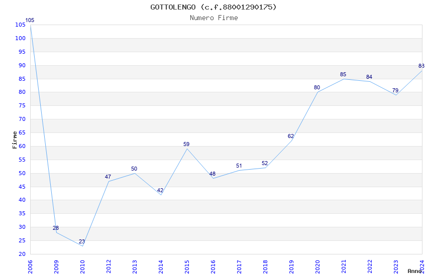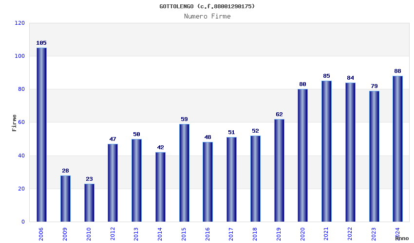 | 2006 | 105 | 2.563,79 | 24,42 | 13.192 | 3.454 | 459 | 2 |