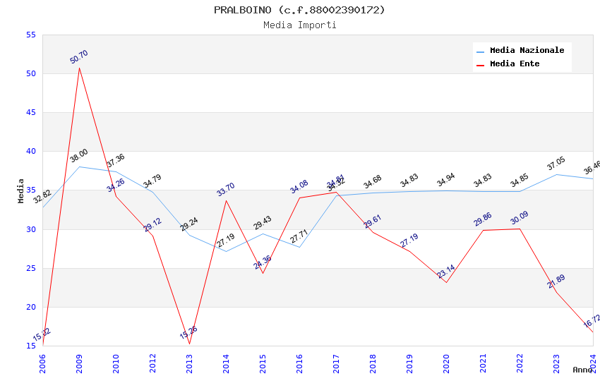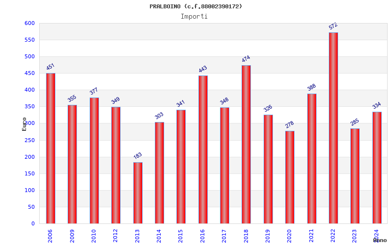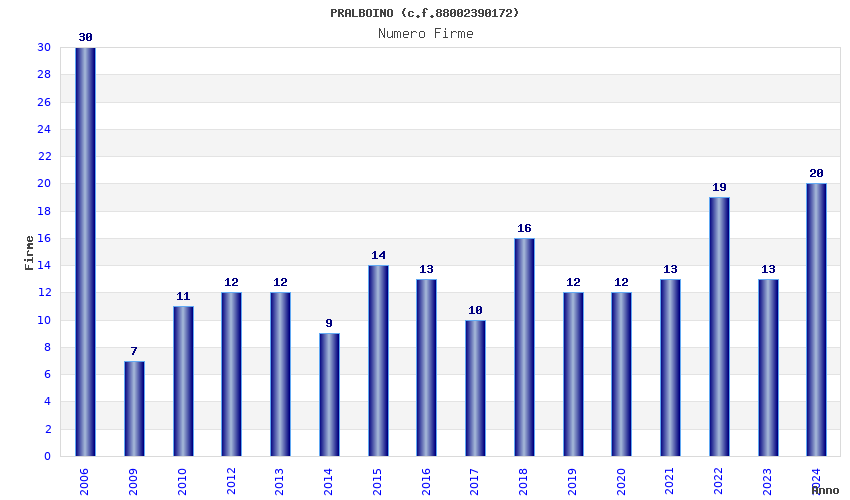 | Anno | Firme | Importi | Media | Naz. | Reg. | Prov. | Comu. |