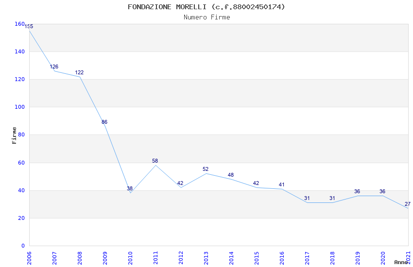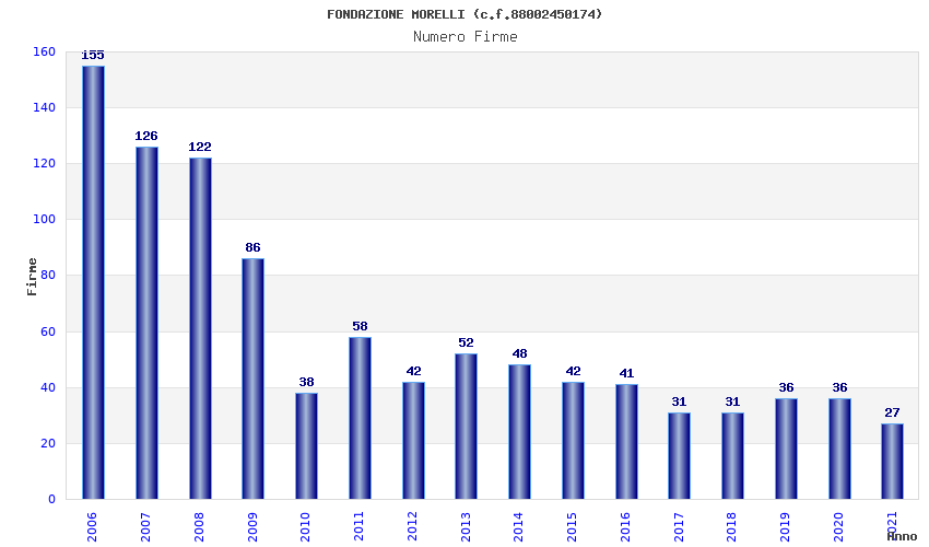 | Anno | Firme | Importi | Media | Naz. | Reg. | Prov. | Comu. |