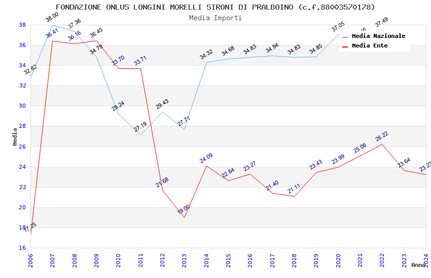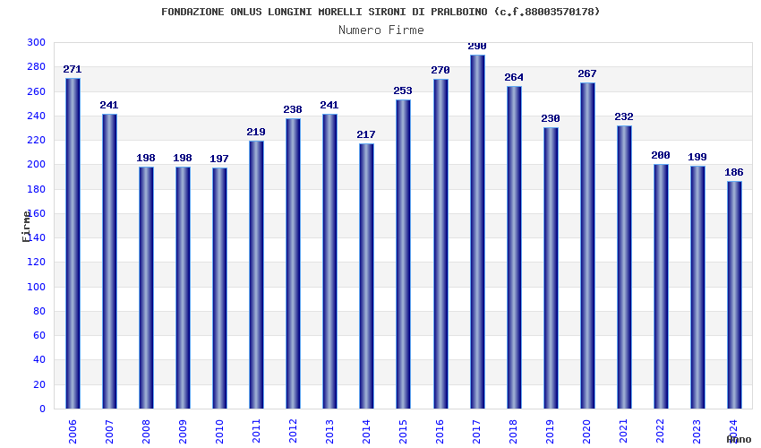 | Anno | Firme | Importi | Media | Naz. | Reg. | Prov. | Comu. |