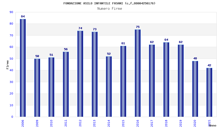 | Anno | Firme | Importi | Media | Naz. | Reg. | Prov. | Comu. |