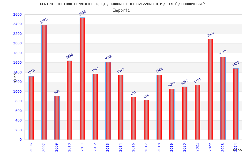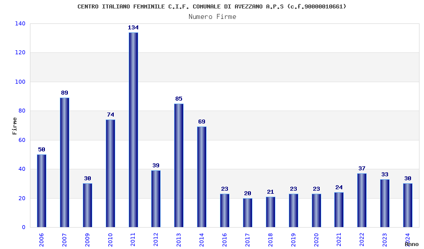 | Anno | Firme | Importi | Media | Naz. | Reg. | Prov. | Comu. |