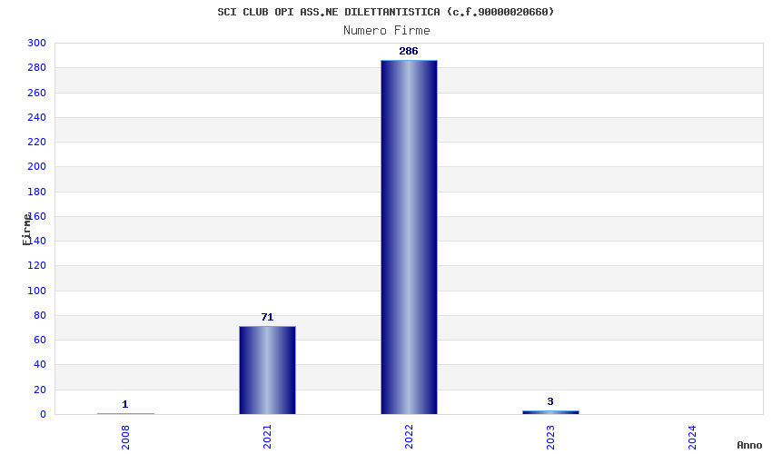 | Anno | Firme | Importi | Media | Naz. | Reg. | Prov. | Comu. |