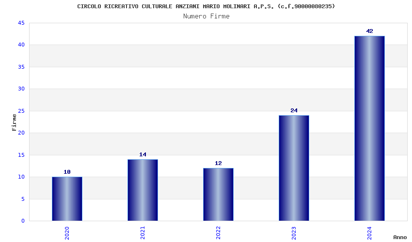 | Anno | Firme | Importi | Media | Naz. | Reg. | Prov. | Comu. |