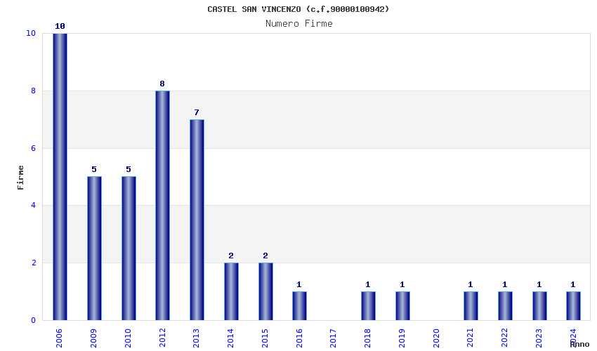 | Anno | Firme | Importi | Media | Naz. | Reg. | Prov. | Comu. |