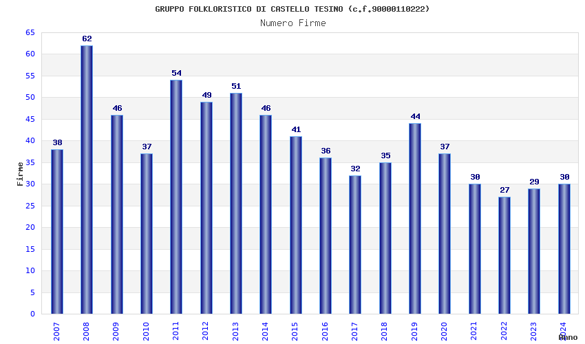 | Anno | Firme | Importi | Media | Naz. | Reg. | Prov. | Comu. |