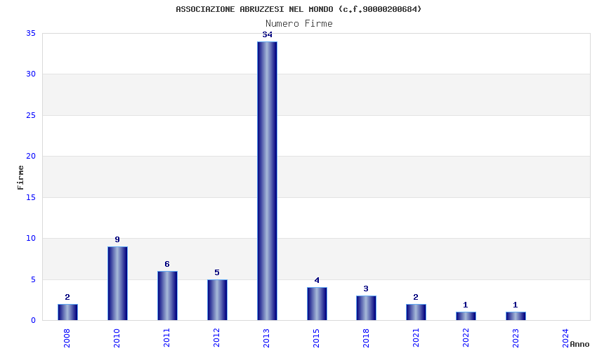 | Anno | Firme | Importi | Media | Naz. | Reg. | Prov. | Comu. |