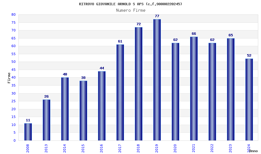 | Anno | Firme | Importi | Media | Naz. | Reg. | Prov. | Comu. |
