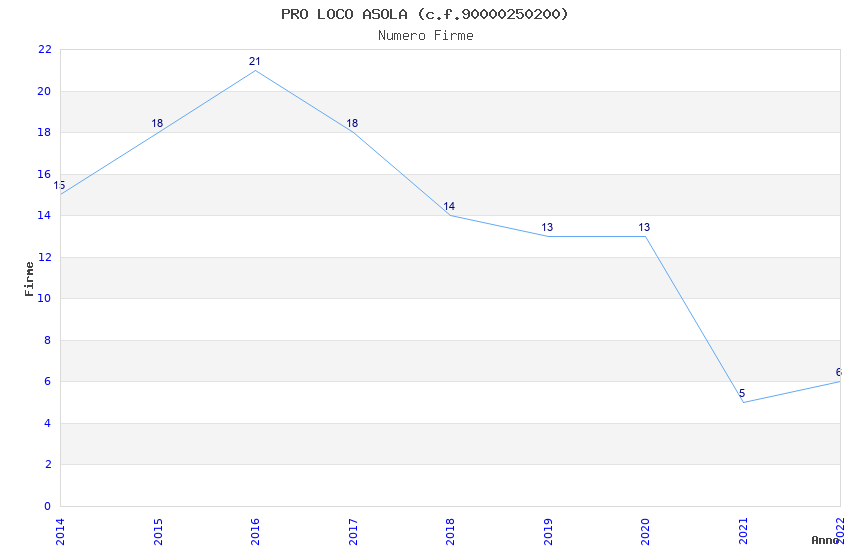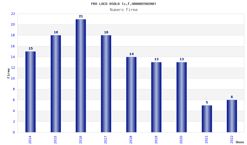 | Anno | Firme | Importi | Media | Naz. | Reg. | Prov. | Comu. |