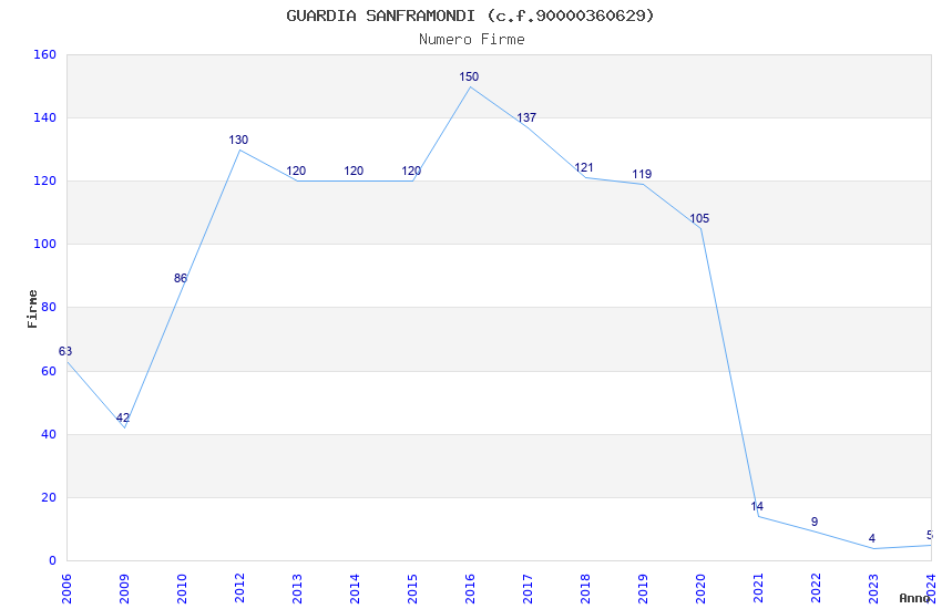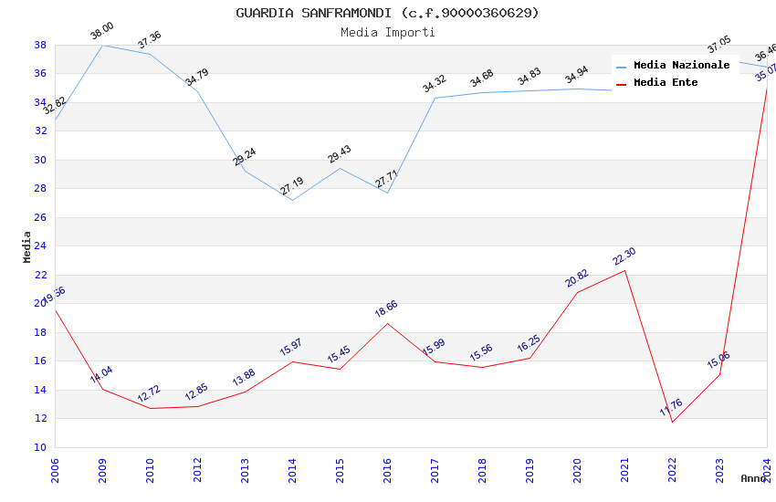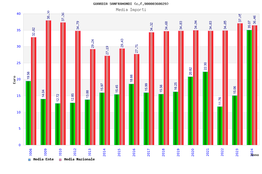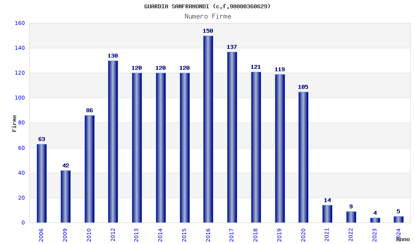 | Anno | Firme | Importi | Media | Naz. | Reg. | Prov. | Comu. |