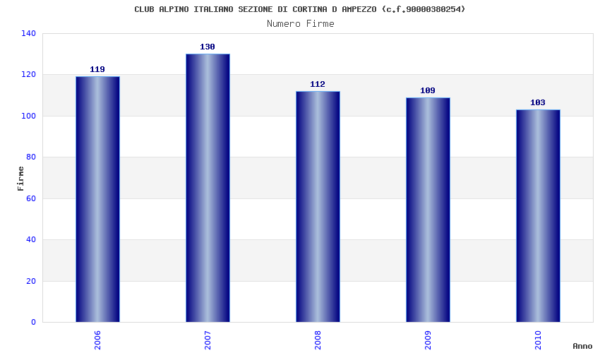 | Anno | Firme | Importi | Media | Naz. | Reg. | Prov. | Comu. |