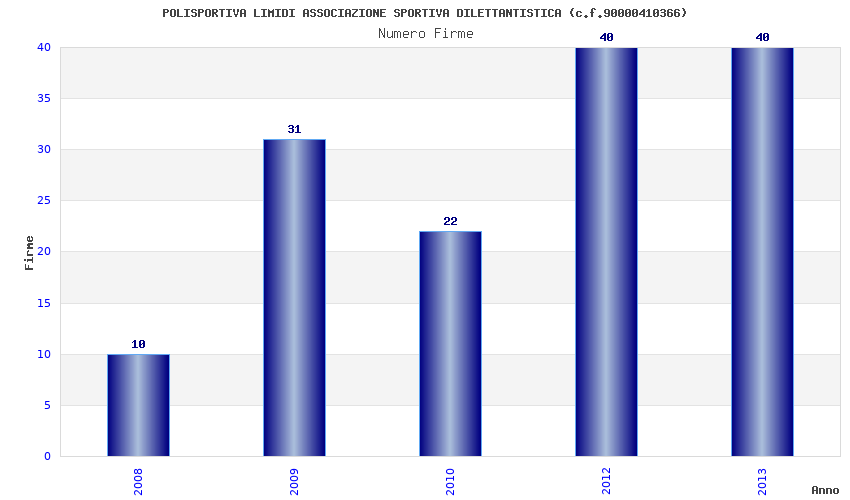 | Anno | Firme | Importi | Media | Naz. | Reg. | Prov. | Comu. |