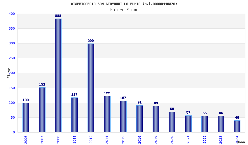 | Anno | Firme | Importi | Media | Naz. | Reg. | Prov. | Comu. |
