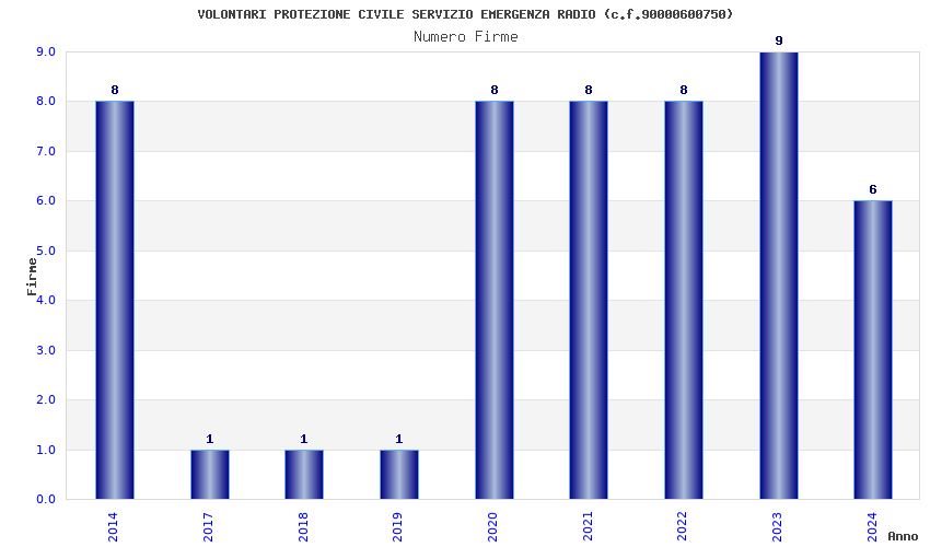 | Anno | Firme | Importi | Media | Naz. | Reg. | Prov. | Comu. |