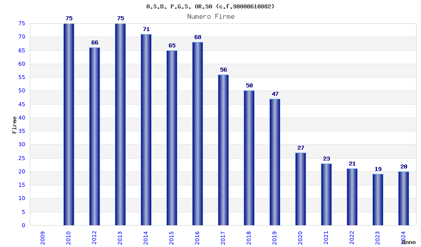 | Anno | Firme | Importi | Media | Naz. | Reg. | Prov. | Comu. |