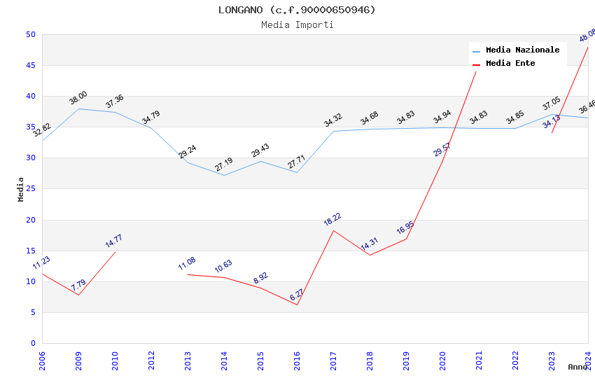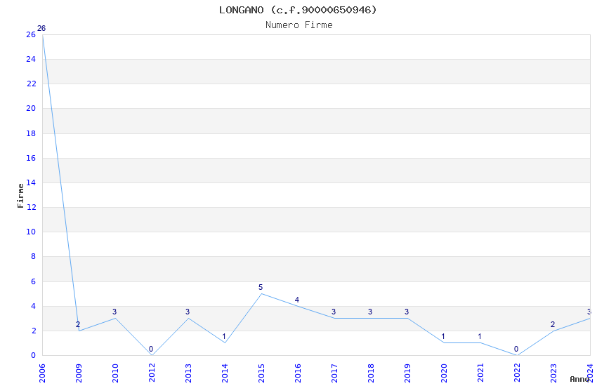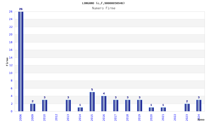 | Anno | Firme | Importi | Media | Naz. | Reg. | Prov. | Comu. |