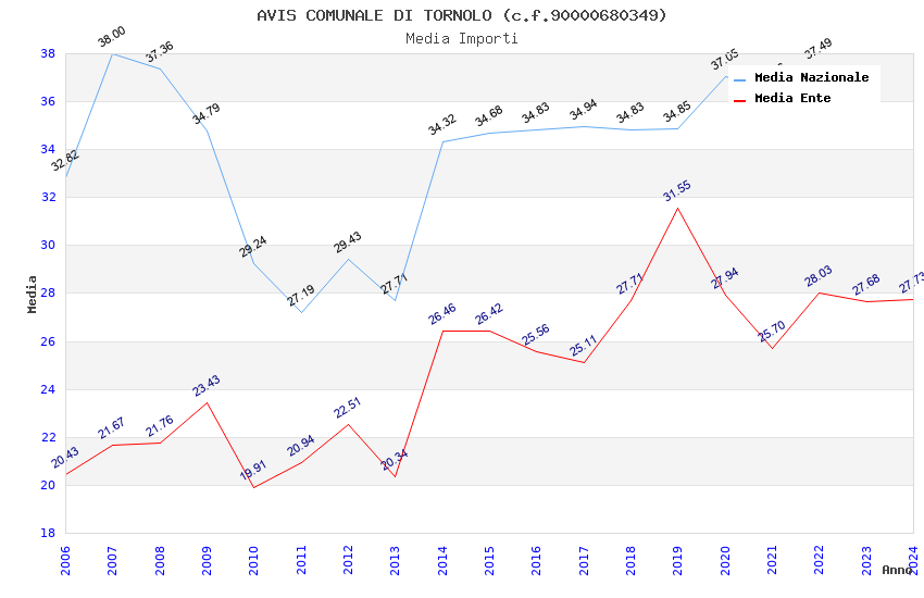 | Anno | Firme | Importi | Media | Naz. | Reg. | Prov. | Comu. |