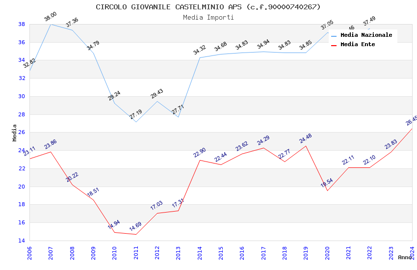 | Anno | Firme | Importi | Media | Naz. | Reg. | Prov. | Comu. |