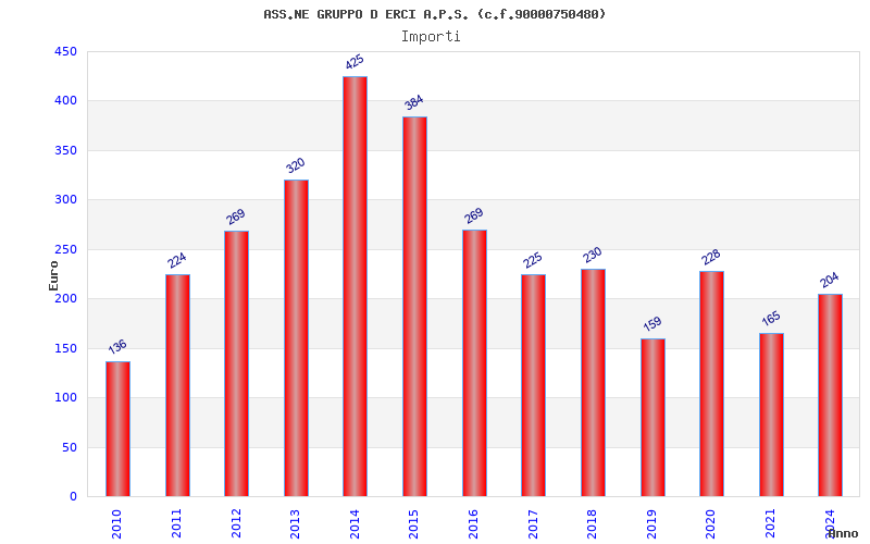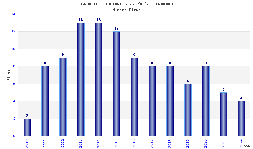 | Anno | Firme | Importi | Media | Naz. | Reg. | Prov. | Comu. |