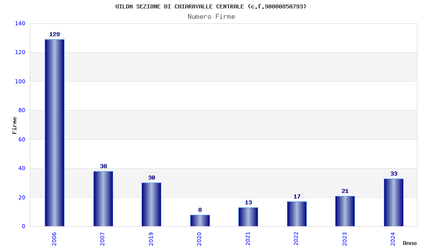 | Anno | Firme | Importi | Media | Naz. | Reg. | Prov. | Comu. |