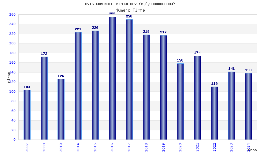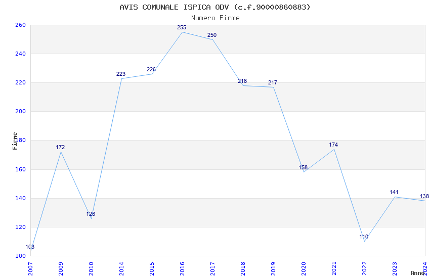 | 2024 | 138 | 2.123,71 | 15,39 | 23.017 | 1.441 | 72 | 3 |