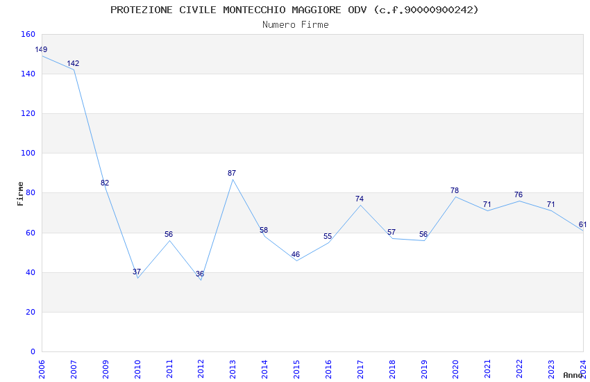 | 2024 | 61 | 3.194,34 | 52,37 | 16.467 | 1.520 | 280 | 10 |