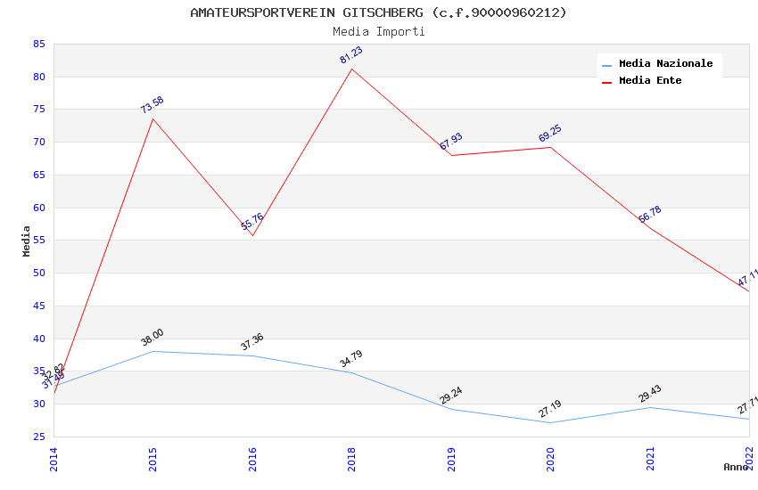 | Anno | Firme | Importi | Media | Naz. | Reg. | Prov. | Comu. |