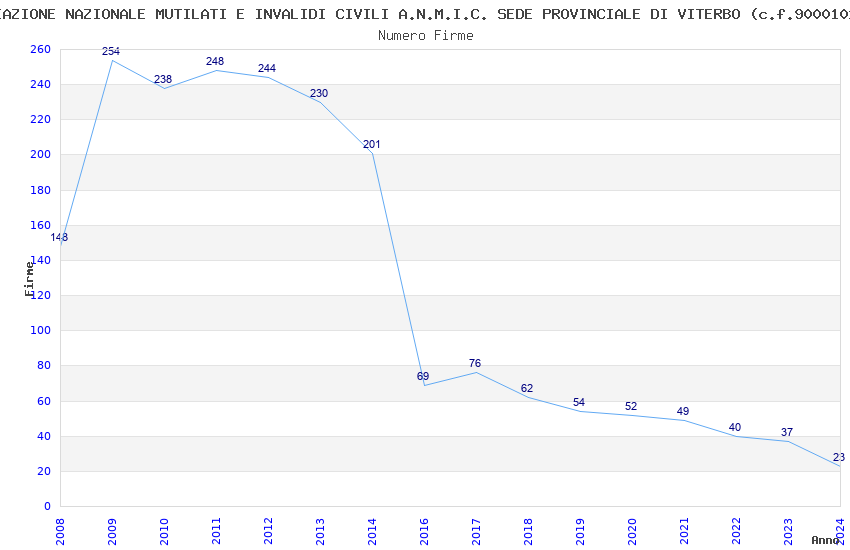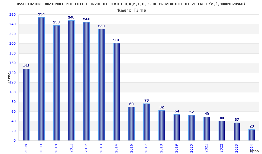 | Anno | Firme | Importi | Media | Naz. | Reg. | Prov. | Comu. |