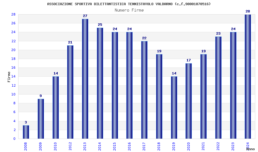 | Anno | Firme | Importi | Media | Naz. | Reg. | Prov. | Comu. |