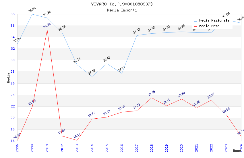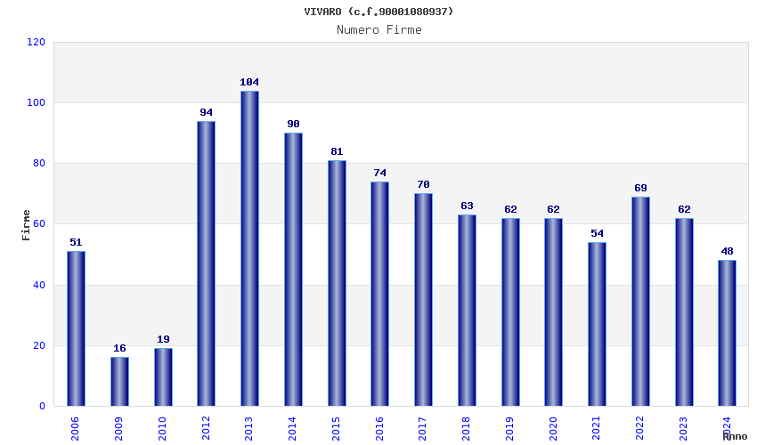 | Anno | Firme | Importi | Media | Naz. | Reg. | Prov. | Comu. |