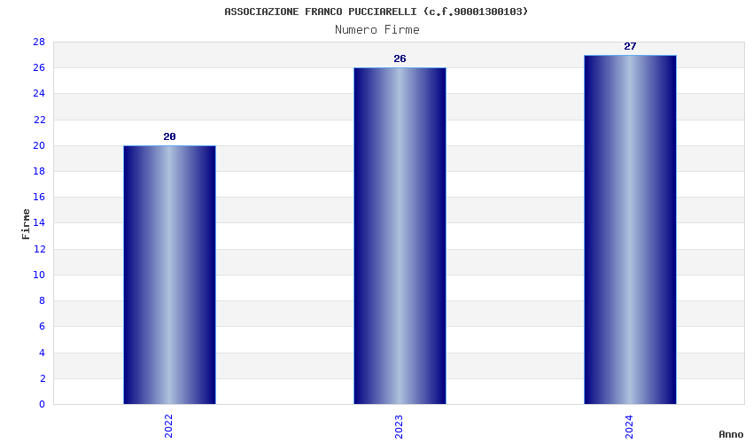 | Anno | Firme | Importi | Media | Naz. | Reg. | Prov. | Comu. |
