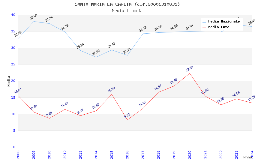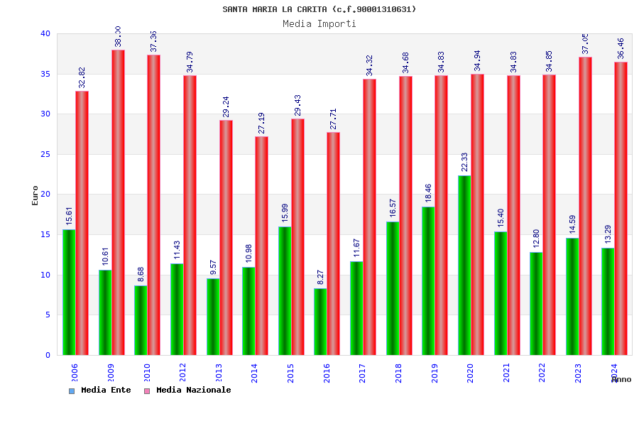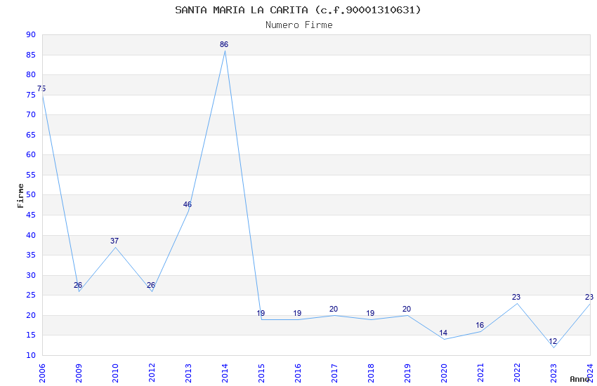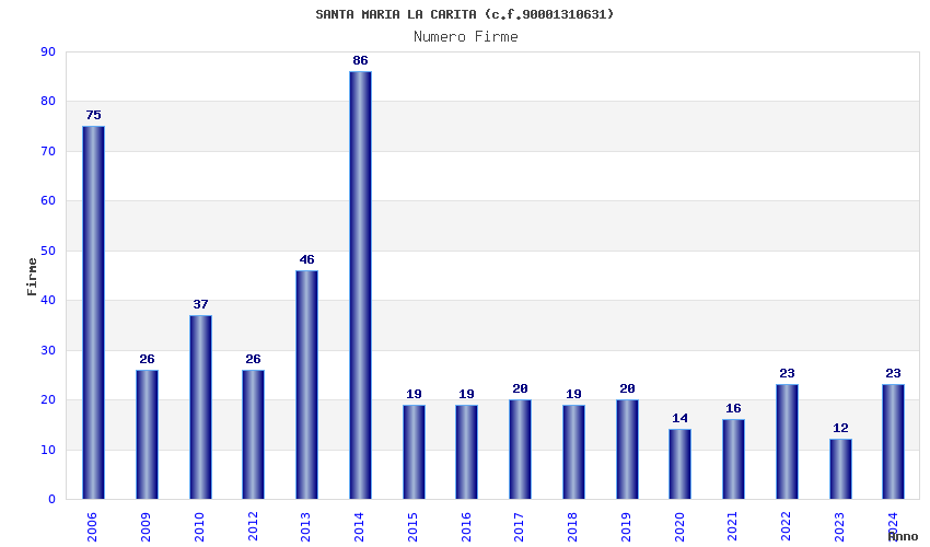 | Anno | Firme | Importi | Media | Naz. | Reg. | Prov. | Comu. |