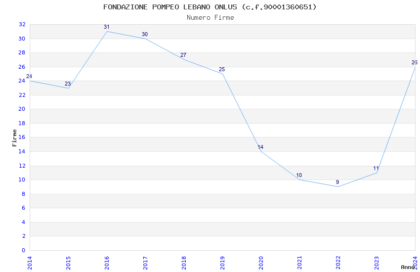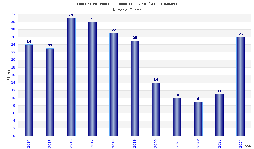 | Anno | Firme | Importi | Media | Naz. | Reg. | Prov. | Comu. |
