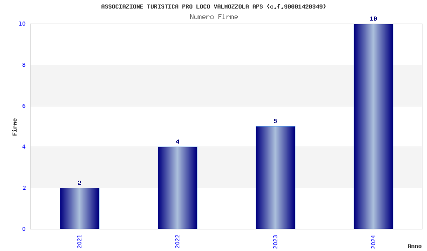 | Anno | Firme | Importi | Media | Naz. | Reg. | Prov. | Comu. |