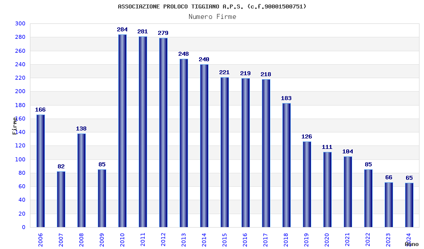 Anno Firme Importi Media Naz. Reg. Prov. Comu.
