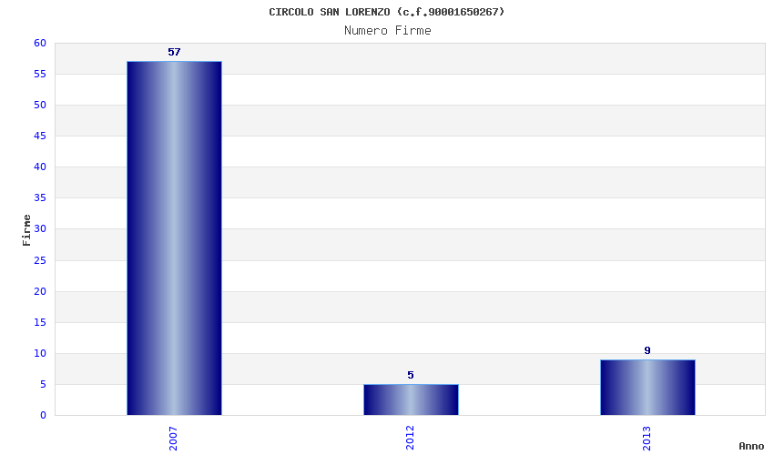 | Anno | Firme | Importi | Media | Naz. | Reg. | Prov. | Comu. |