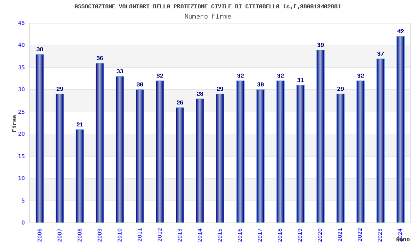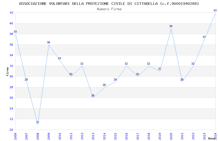 | 2024 | 42 | 1.303,99 | 31,05 | 32.236 | 2.996 | 642 | 18 |