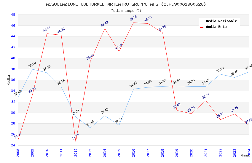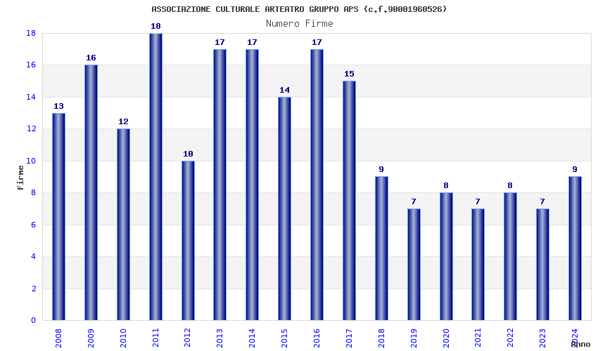 | Anno | Firme | Importi | Media | Naz. | Reg. | Prov. | Comu. |