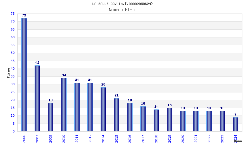 | Anno | Firme | Importi | Media | Naz. | Reg. | Prov. | Comu. |