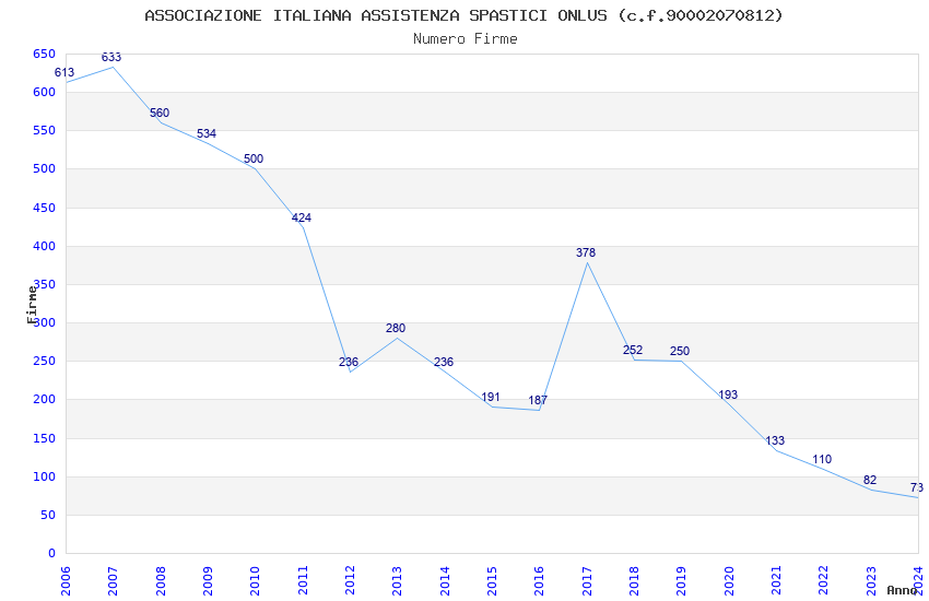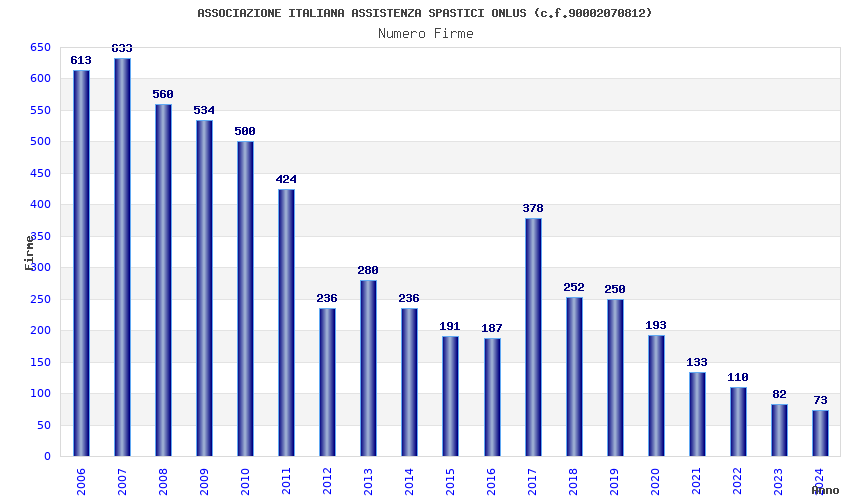 | 2024 | 73 | 1.686,11 | 23,10 | 27.235 | 1.721 | 138 | 9 |
