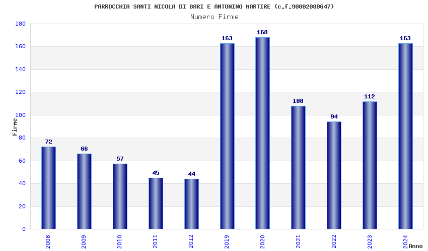 | Anno | Firme | Importi | Media | Naz. | Reg. | Prov. | Comu. |
